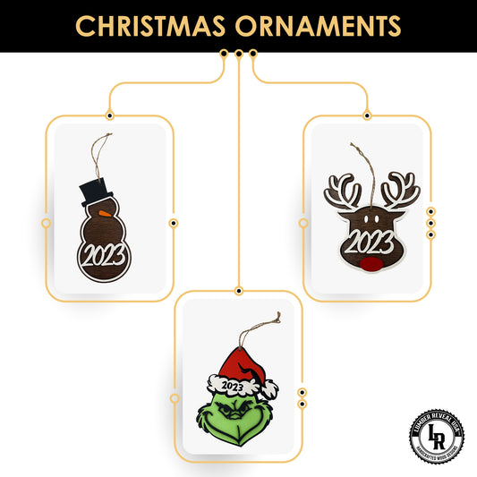 Personalized Wood Christmas Ornaments | Christmas Tree Decorations with Custom Reindeer, Snowman, & Monster Designs